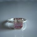 クリアから淡いグリーンに、パープルピンクのカラーバンドが美しく入ったフローライトを、Silver925で一点もののリングにお仕立てしました。