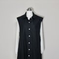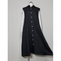 カラーリネン◆Aラインシャツワンピース◆黒◆フリーサイズ(中厚、リネン100%)