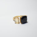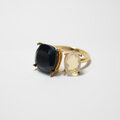 対照的な二つの天然石が寄り添うように輝き、スタイリッシュで洗練された存在感を放ちます。