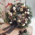 飾りつけには、松ぼっくりやホワイトのお花をつけています。