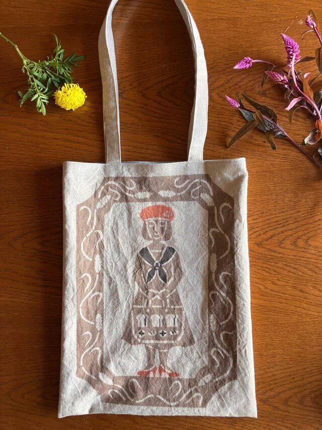 染料化柿渋染めバッグ パン好き女子a(訳ありB品)