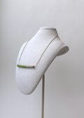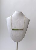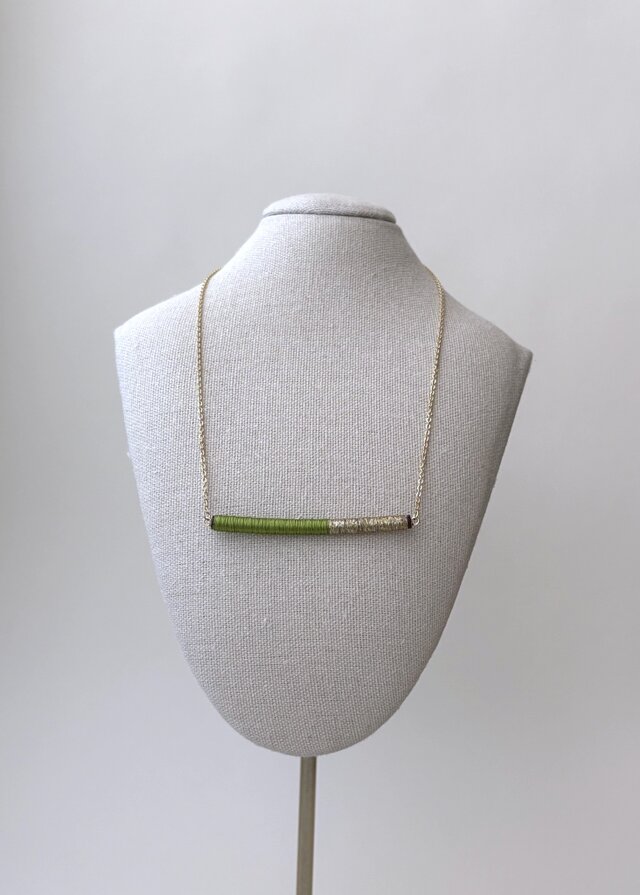 このネックレスはグリーンとゴールドの2色を使い秋らしい色合いに仕上げました。