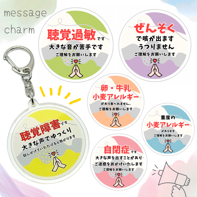 目には見えない疾患を抱えていることや、周りの人に配慮してほしい事をお知らせするメッセージキーホルダーです。