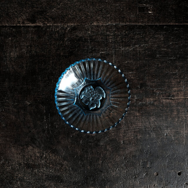 アイスクリームを乗せたくる◆桃と葡萄。プレスガラス小鉢 アンティーク 古民家 古道具 骨董/antique 昭和初期