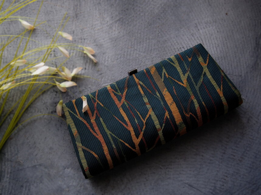 昭和レトロ 横長バック 白樺林紋様 クラッチバッグ 和装バック バックインバック