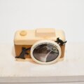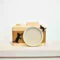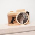 猫をこよなく愛する女性のためにデザインした、温もりあふれるカメラ型の木製フォトフレームです。