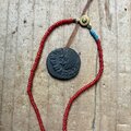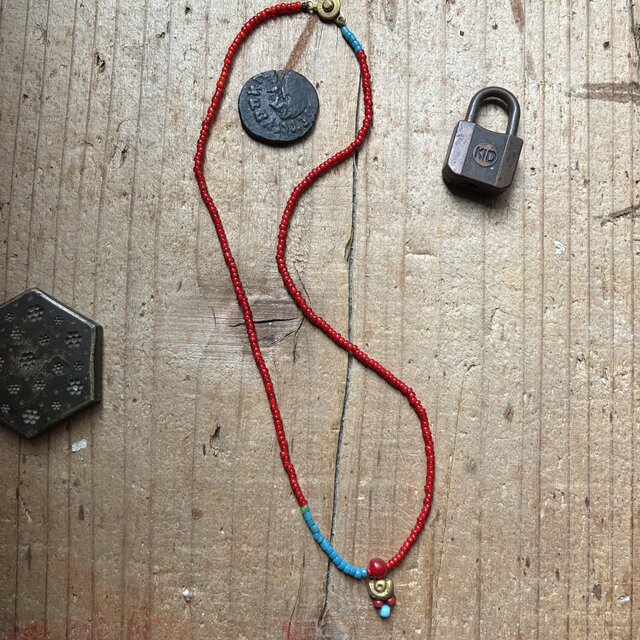 *古の赤いネックレス@インドのモチーフビーズ+ホワイトハート+アジア渡りの不揃いなシードビーズ