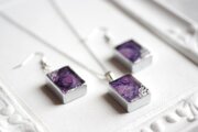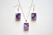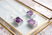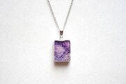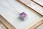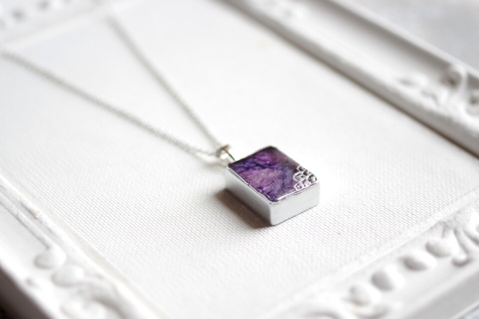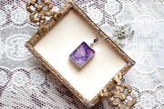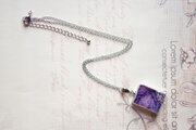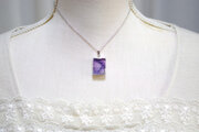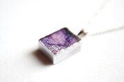 数種類の紫が滲みあうレジンを銀色で縁取り、青海波模様を描いた、小さな玉手箱のようなペンダント。