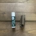 リップクリーム本体に沿ったスッキリしたフォルムに仕上げていて写真のようにカバーを付けたまま下のツマミを回せますのでそのままお使いになれます。