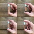 リップクリーム本体に沿ったスッキリしたフォルムに仕上げていて写真のようにカバーを付けたまま下のツマミを回せますのでそのままお使いになれます。