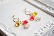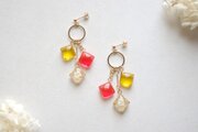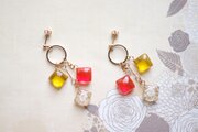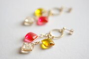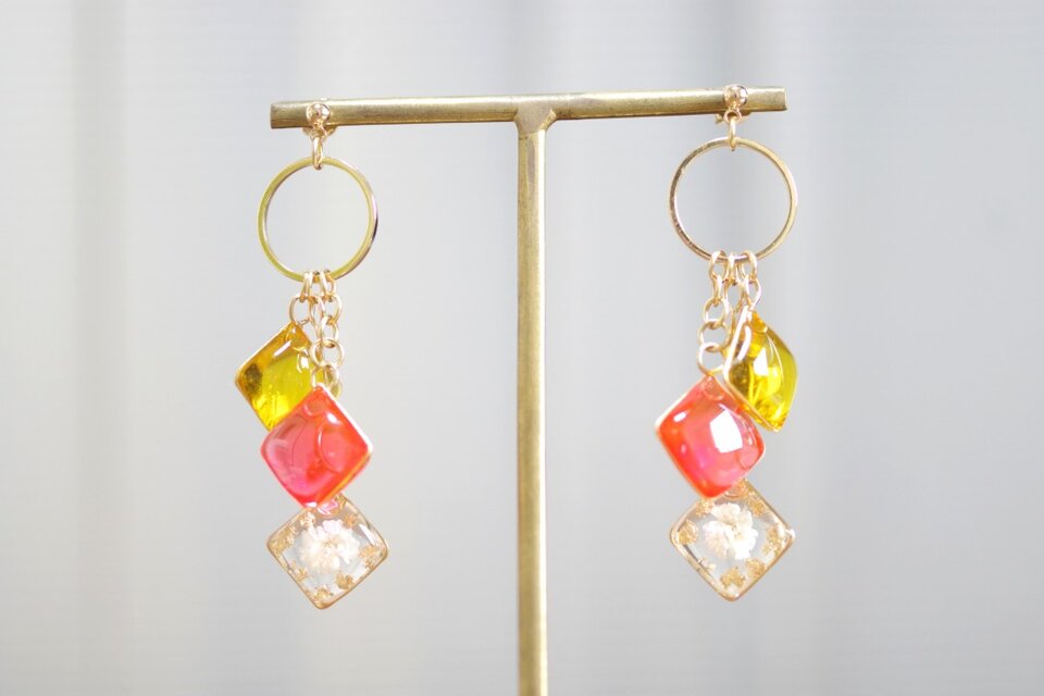 レジンアート スクエアモチーフとリングパーツのピアス〈紅葉〉