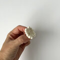乾燥すると強靭になる紙の性質を活かし、石膏や陶器にも見える仕上がりですが、とても軽く、ブローチピンを合わせても2gほど。