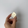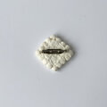 乾燥すると強靭になる紙の性質を活かし、石膏や陶器にも見える仕上がりですが、とても軽く、ブローチピンを合わせても2gほど。