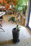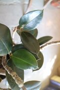 ちょっと個性的な形の葉が赤みかかった黒いフィカス・バーガンディー。