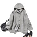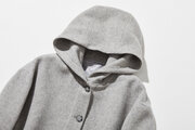 軽くて暖かいフード付きアウター ウールアウター グレー 241206-7