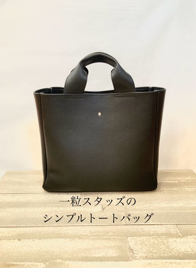 たった一粒の小さなスタッズなのにさりげなくインパクトを与える『一粒スタッズシリーズ』の第二弾とし、シンプルなトートバッグを作りました。