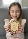 木製 〖 名入れ 〗リボン エレガント オーナメント | クリスマス 出産祝い | 贈り物 オーダーメイド | 女の子