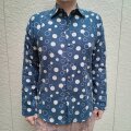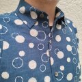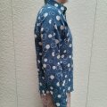 新作手作り長袖むら糸藍染調シャツ(雪輪文様)