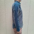 新作手作り長袖むら糸藍染調シャツ(和文様パッチワーク調)