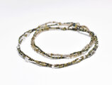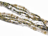 一粒一粒細かなカットが施されたものと、丸みを帯びたものを繋いでます。約1.5mmほどのとても小さなビーズです。