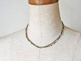 フランスアンティークカットメタルビーズとハーキマーダイヤモンド、琥珀&クリアビーズの2連ネックレス
