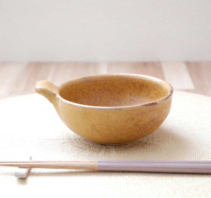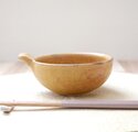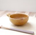 秋冬に嬉しいとんすいに成形し、土物らしさを感じさせてくれる山吹色の結晶釉をかけて焼き上げました。