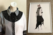 素敵なブラウスが届きました。首元の黒いトリミングがとても効いていると思います。デザイン画のように黒いロングスカートと合わせて、足元はパンプスで気合を入れて。動きやすいのもいいですね。ありがとうございました。