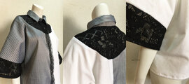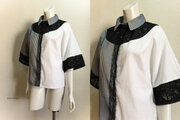 首回りと前立て、袖先に黒レースを使用したデザインになります。