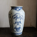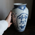 和洋な雰囲気◆花と蝙蝠 伊万里 染付花瓶 壺 古民家 古道具 骨董/antiques アンティーク