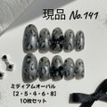 モード×レオパード×ブラックリボン*甘辛MIXな大人ガーリーネイルチップ【ミディアムオーバル】10枚セット/現品販売