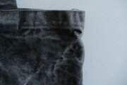 製品染め特有のムラ感を良い塩梅で出しつつ、生地の綾織の畝との掛け合わせが美しく仕上がりました。