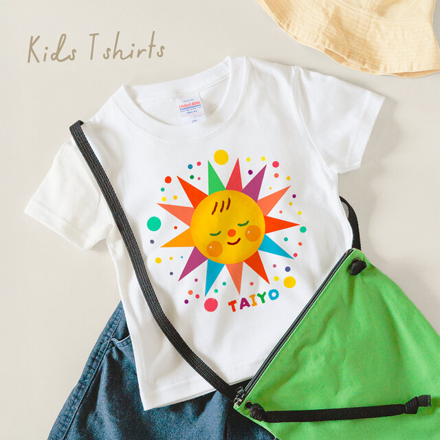 ◉名入れ イラストが選べる 出産祝い 名入れ 誕生日 プレゼント Tシャツ 子供服 / 赤ちゃん太陽さんはおねむです