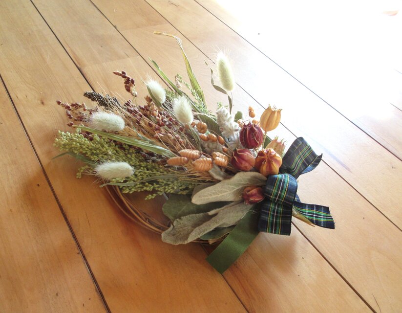 今回も素敵な作品をありがとうございます。大人っぽくて上品な色合いに一目惚れしました! 以前お迎えした薔薇のリースもとても素敵で色褪せるまで飾り続けていたのですが、今回のリースも日に何度も眺めてしまうほど素敵でうっとりしてしまいます。定位置の寝室に飾っています☆
