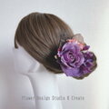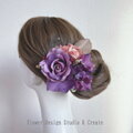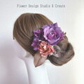 パープルの薔薇と秋薔薇の髪飾り フラメンコ フローレス ダンス 髪飾り 発表会 秋 パープル 紫 髪飾り ハロウィン 秋色