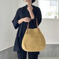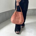 当店大人気の牛床ベロア丸型トートに、肩掛けができるMサイズが登場しました!