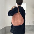 『2025登場Mサイズ』牛床ベロアと極厚オイルヌメの丸型トートバッグ M-size【ベビーピンク】