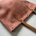 持ち手の革は3.5mm程ある極厚の牛革シュリンクオイルレザー、しかもオイルをたっぷりと含んだ多脂ヌメで、厚みがあるのにとても柔らかく、使い込むほどに味わいが出てきます^^革素材を存分に味わって頂きたいので、裏地は付けずスエード調の床面をそのまま使用しています。