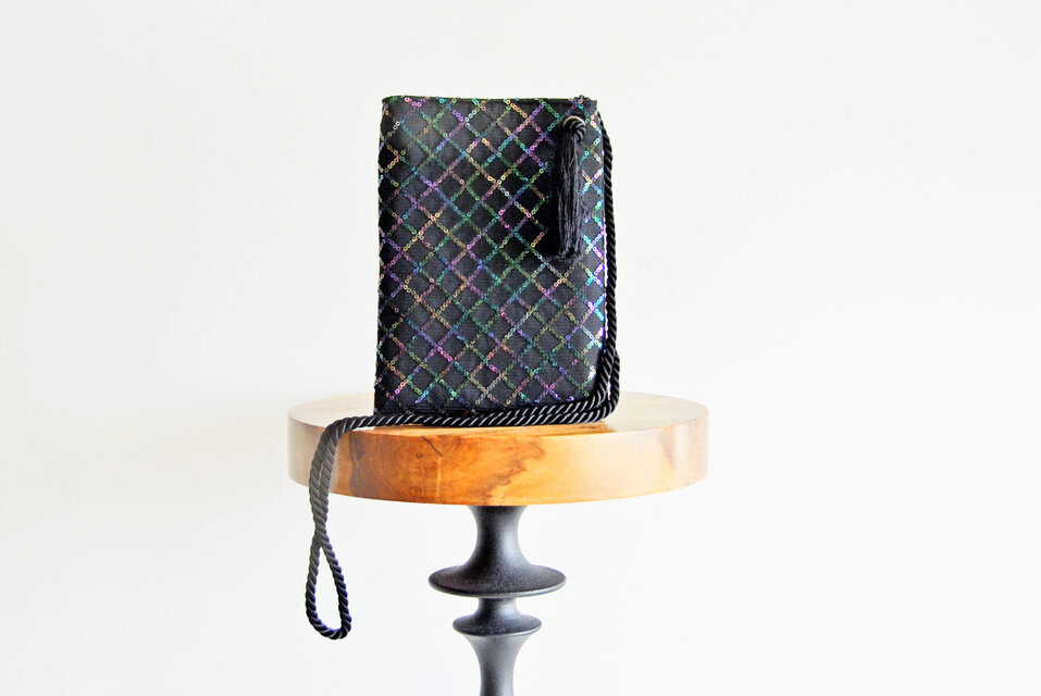 ● オーロラカラーの繊細なスパンコールが魅力的なダイヤモンドチェック柄。