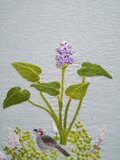 ヒヨドリとツユクサ 手刺繍ブローチ確かに無事受領しました。露草の花が好きなもので、愛らしい刺繍作品で気に入っています。どうもありがとうございました。