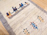 イラン・シラーズ地方の遊牧民(カシュガイ族)が、羊やテント、動物や自然等をモチーフに、自分のインスピレーションで織り描く素朴な手織り絨毯です。どれも手作業のため、基本的に、世界に一枚しかない一点ものです。