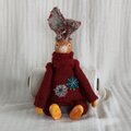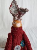 ウール国産毛糸、ウールフェルト、ポリ綿、木材・針金(耳・頭部接続)、布、刺繍糸、ビーズなどなど