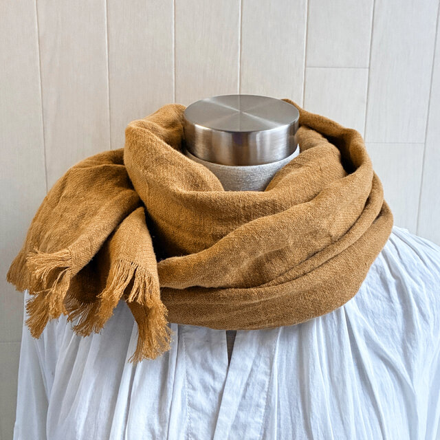 秋冬 ふっくらリネンのストール ライトブラウン ダブルガーゼ
