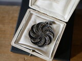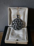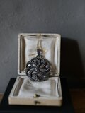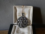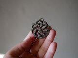 ラピスラズリを取り巻く曲線の細工がとても優雅で、いっぺんで気に入ってしまいました!チェーンを通す部分が大きめなので、様々なチェーンや飾り紐などを通せそうです。どうもありがとうございました♪
