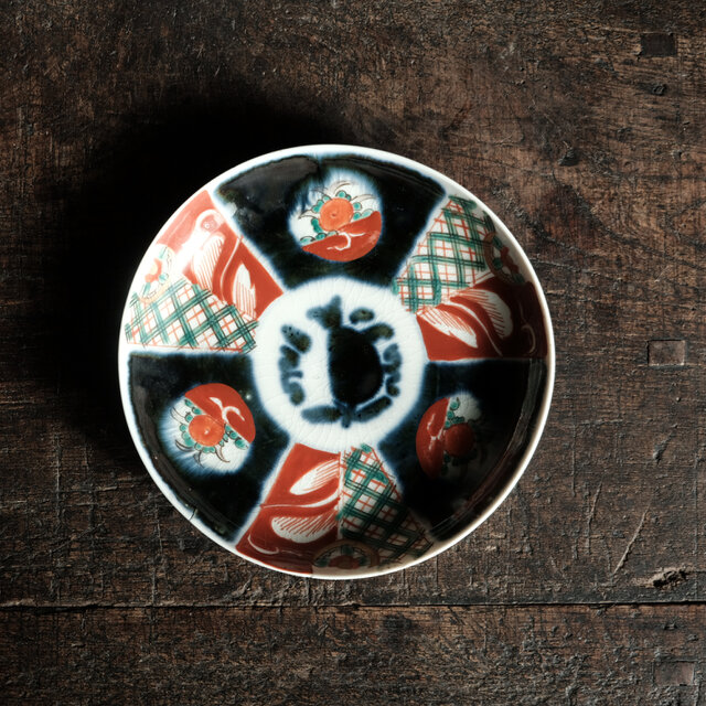 見込みに柘榴◆伊万里 花文色絵金彩中皿 骨董・antiques 暮らしに。明治時代【アマテ】