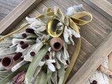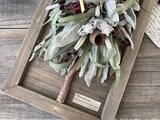 全てドライフラワーで制作しています。ユーカリ、ラムズイイヤー、木の実、ニゲラなどを使用しています。