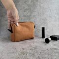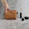 ミニポーチ|上品スエード調×オレンジカラー/自立する小さめポーチ/化粧ポーチ・小物入れ・プレゼントにもおすすめ