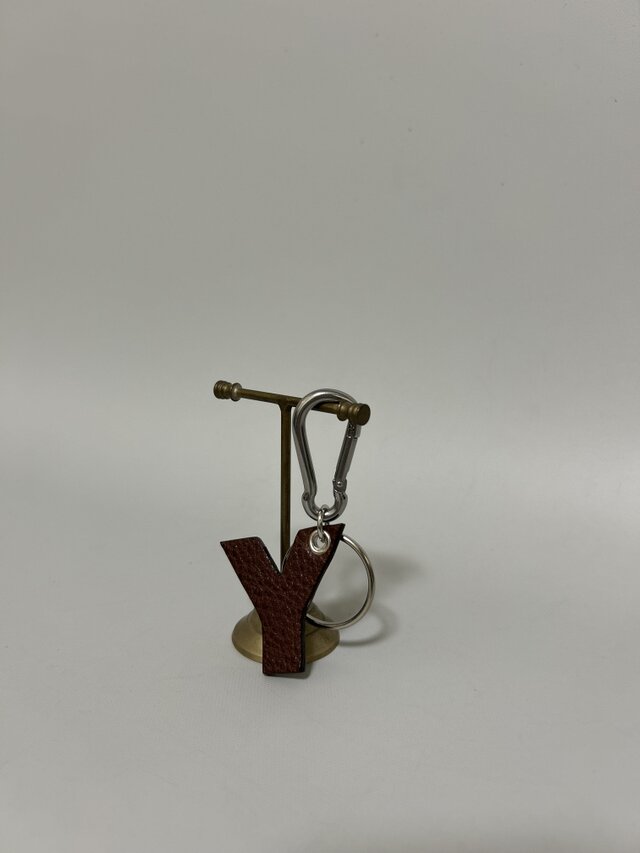姫路レザーアルファベットキーホルダー◆焦げ茶 Y チャーム バックチャーム イニシャルキーホルダー