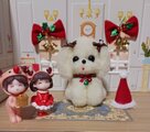 クリスマスの装飾が施された羊毛フェルトのふわふわマルチーズ