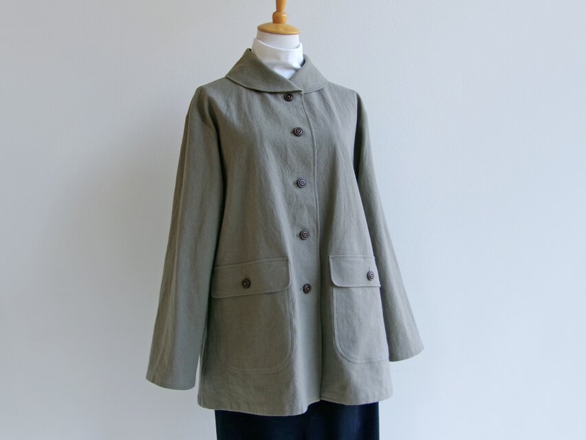 国産のヴィンテージソフト加工の綿麻キャンバス生地を使った、ゆったりとリラックスした着心地のショートコートです。