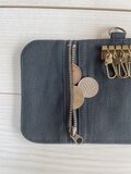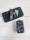 チェック柄岡山デニム 倉敷帆布 三つ折りキーケース 4連 スマートキーケース カードケース コインケース